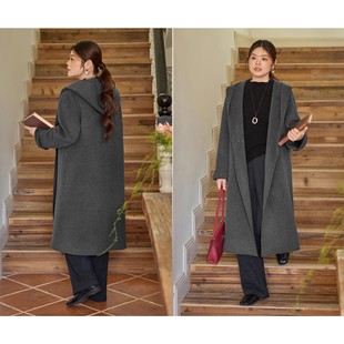 双面呢羊毛羊绒大衣宽松毛呢外套 胖mm中长款 美丽客栈高端大码 女装