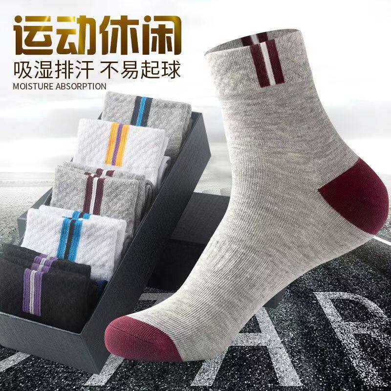 袜子男士 中筒长袜防臭透气吸汗条纹中筒纯色耐穿长袜学院男袜 四季