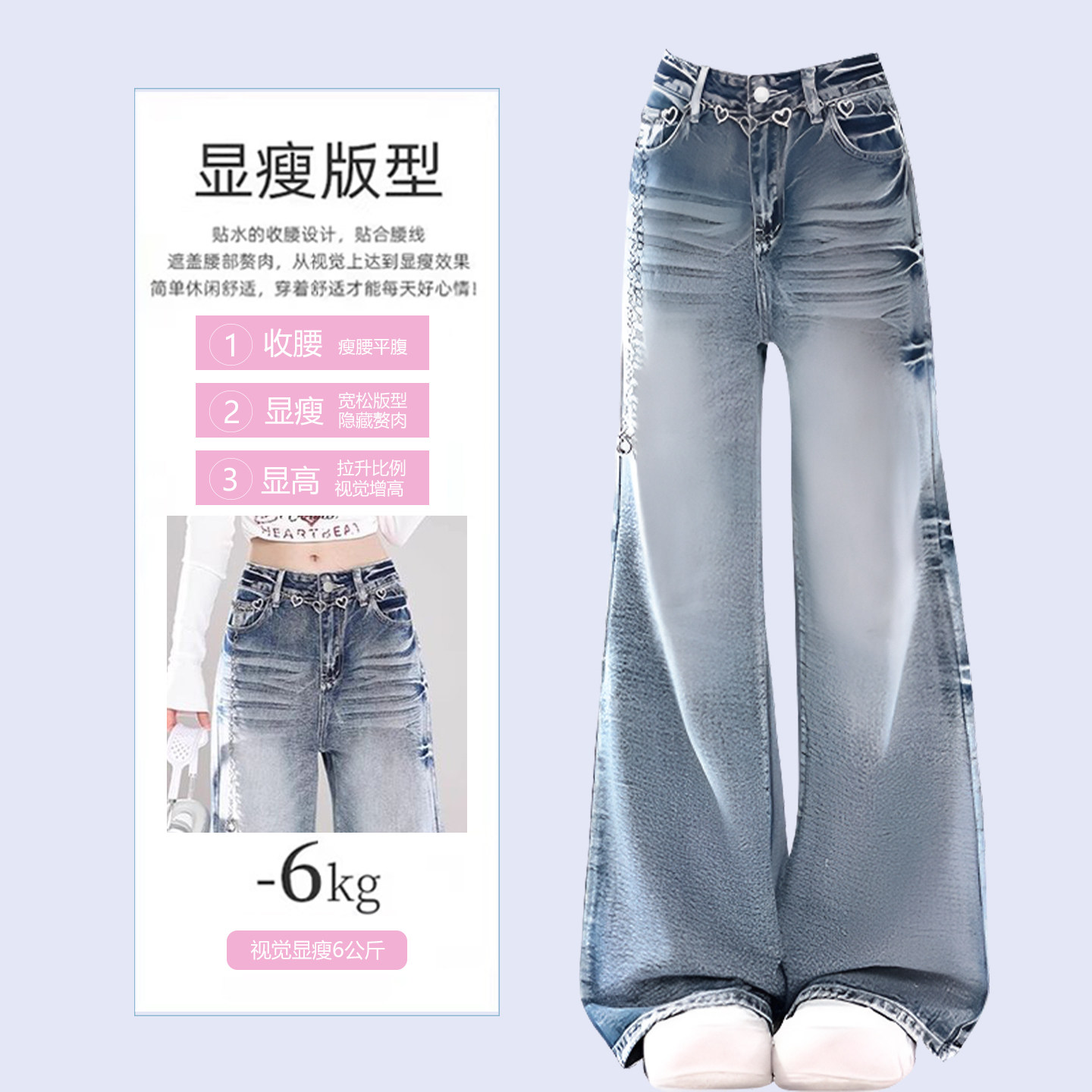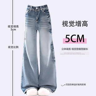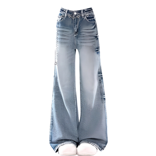 女装 梨形加厚裤 2025秋冬加绒牛仔裤 复古阔腿女裤 子 女美式 胖mm大码