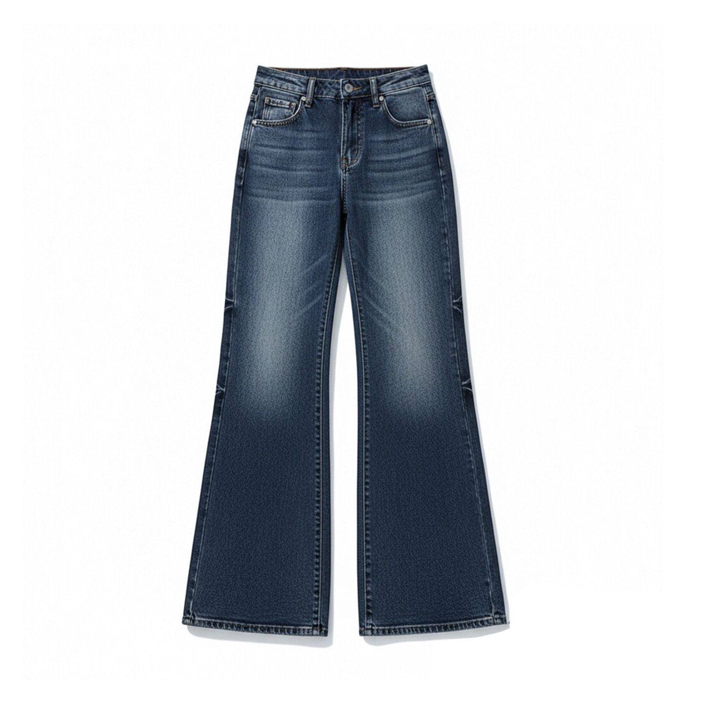 小个子喇叭裤 300斤大码 女美式 胖mm黑色弹力加绒微喇牛仔裤 子 女装
