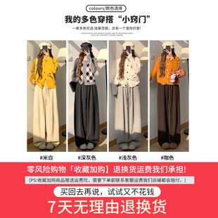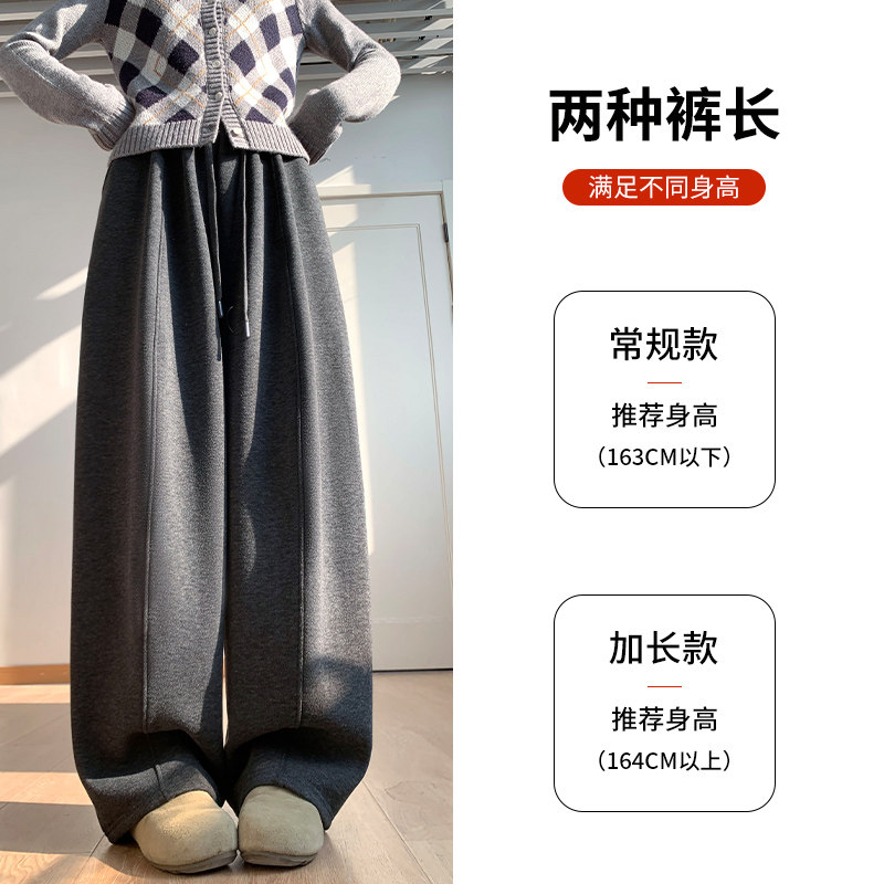 小个子高腰显瘦休闲阔腿裤 2025新款 女秋冬季 深灰色加绒糯米弯刀裤