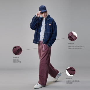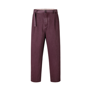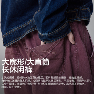子宽松阔腿裤 GUUKA 字母刺绣伐木裤 男款 TECH酒红色复古水洗直筒裤
