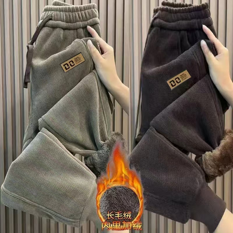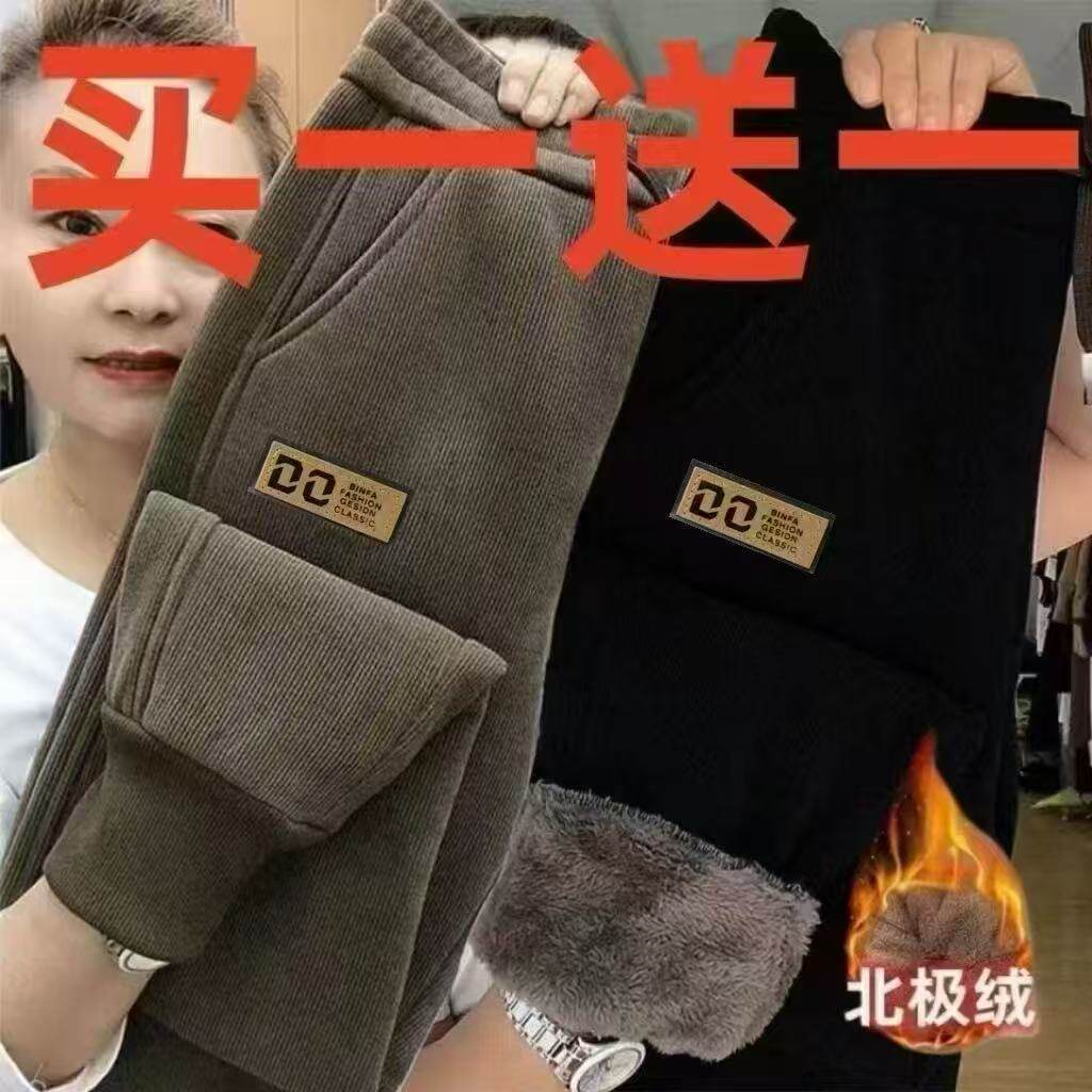 大码 宽松显瘦束脚哈伦裤 加厚加绒灯芯绒裤 女装 子 子女2023新款 冬季