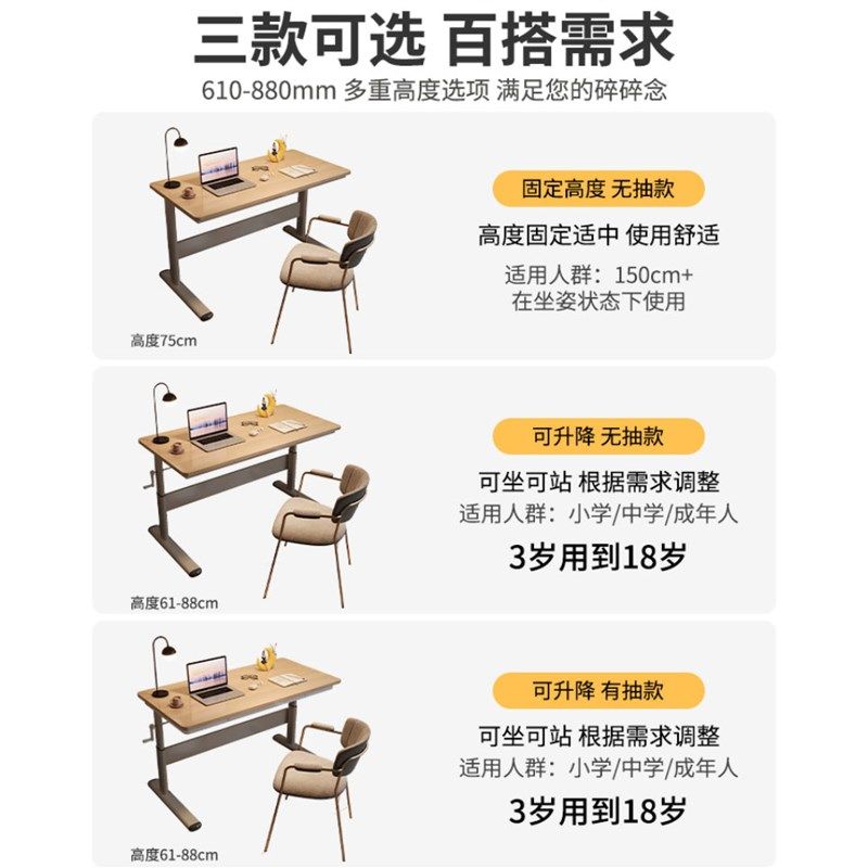 可升降桌子电脑桌台式 家用书桌手摇学生学习桌写字工作台办公桌子