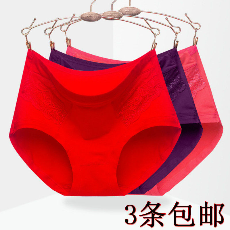 红色本命年 女棉质底裆性感蕾丝中腰平角裤 3条179元 爱慕春夏内裤