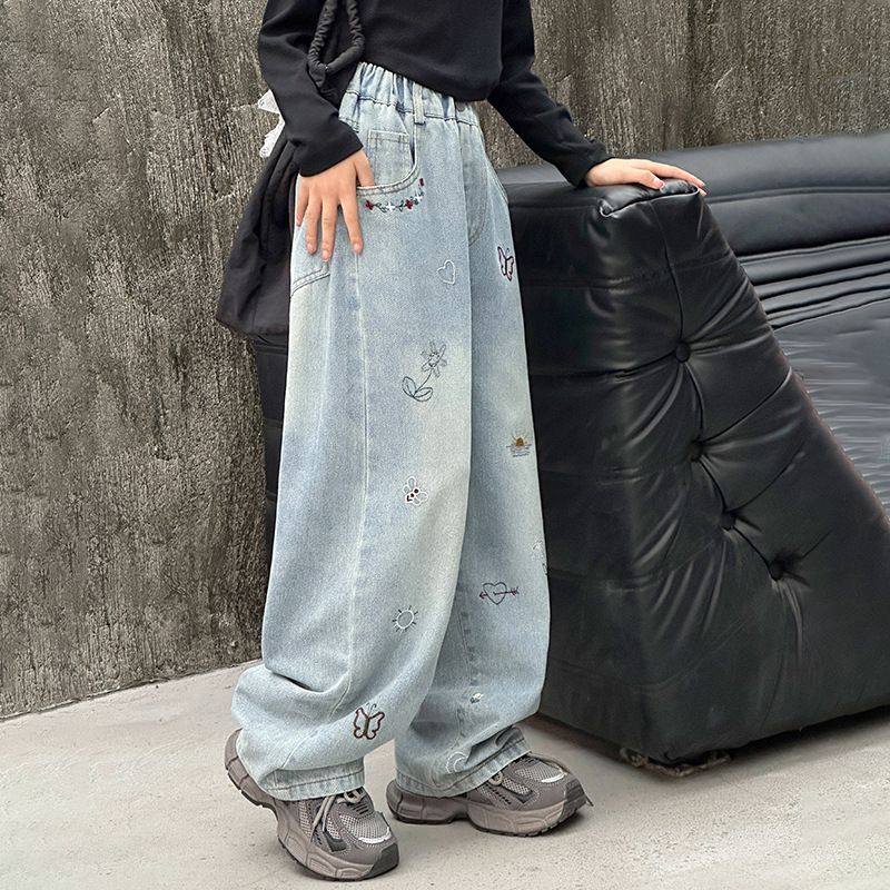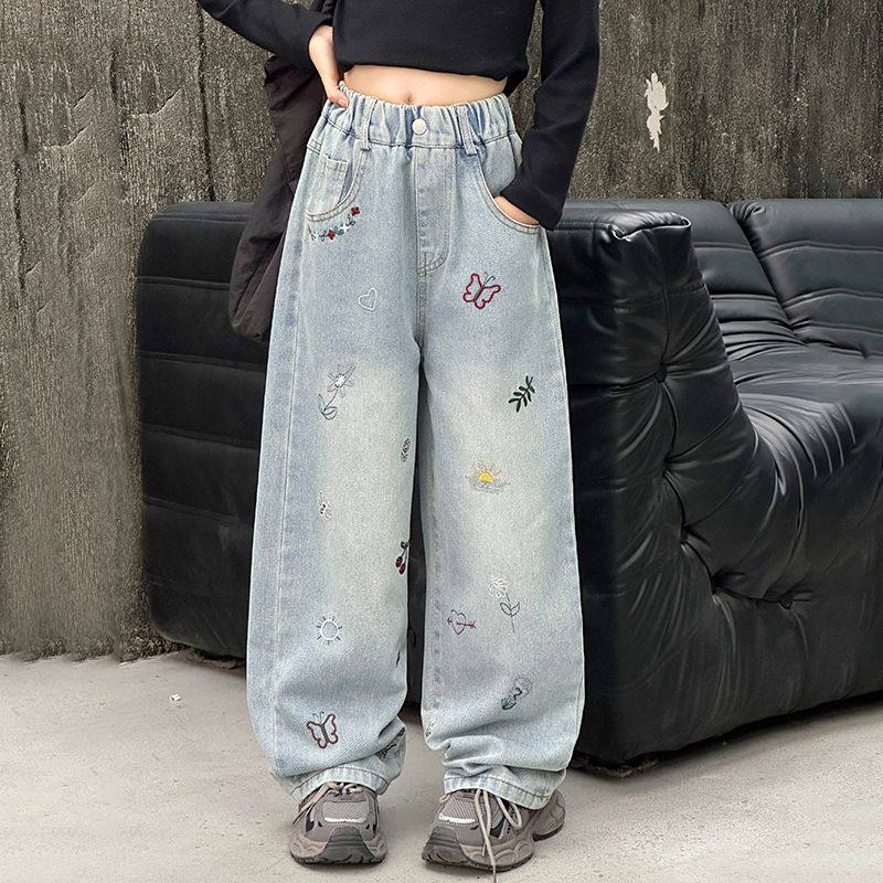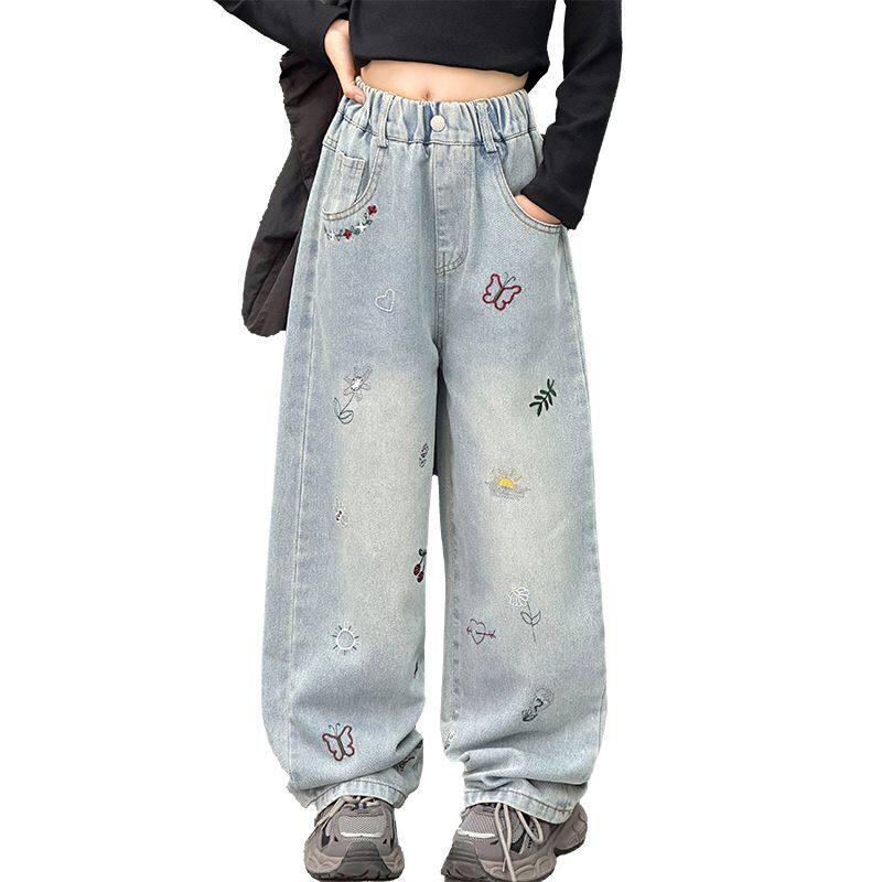 秋冬加绒儿童冬装 一体绒阔腿裤 新款 子中大童冬季 休闲裤 女童牛仔裤
