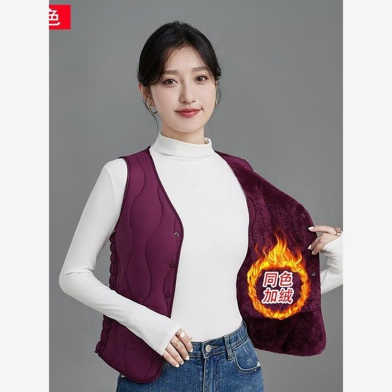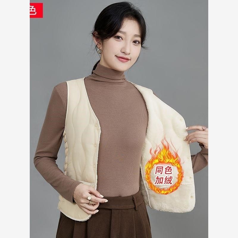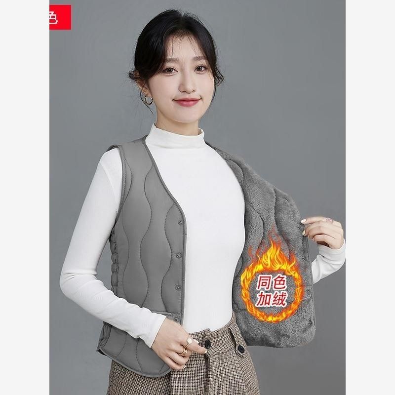 百搭内胆 v领坎肩修身 2024新款 秋冬羽绒棉马甲女加绒保暖背心短款