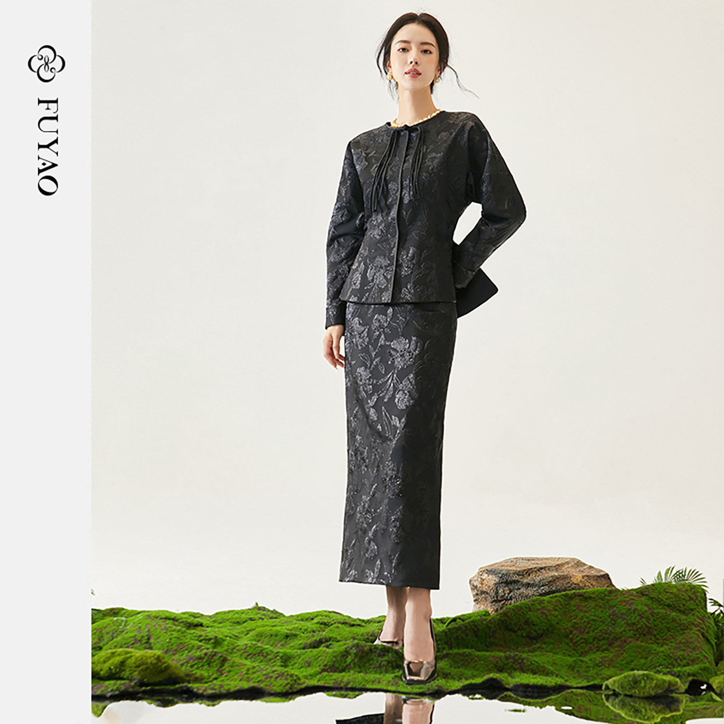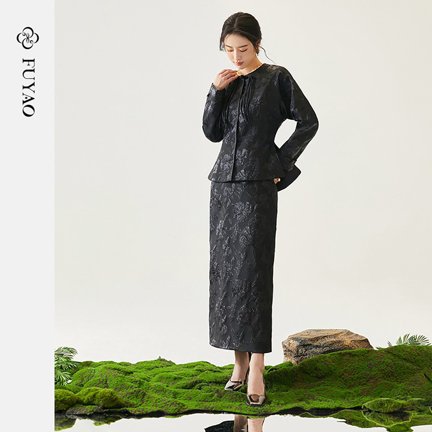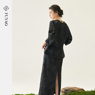 浮雕感提花复古高级感时尚 上衣女2025春秋款 套裙 新中式 FUYAO扶摇
