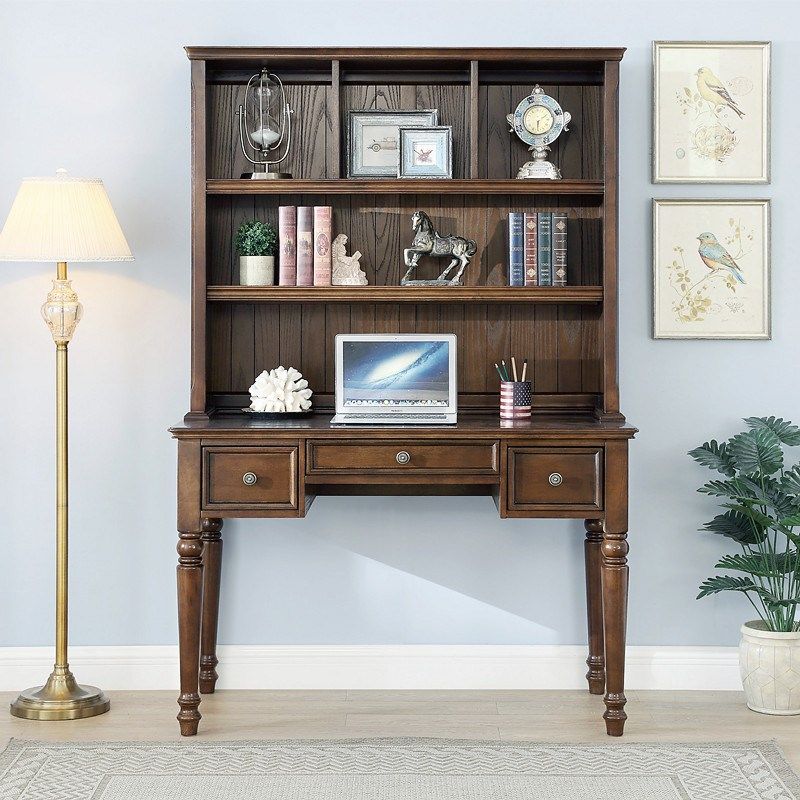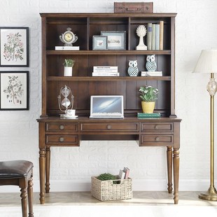 美式 实木书桌书柜书架一体组合家用儿童学习办公桌卧室学生电脑桌