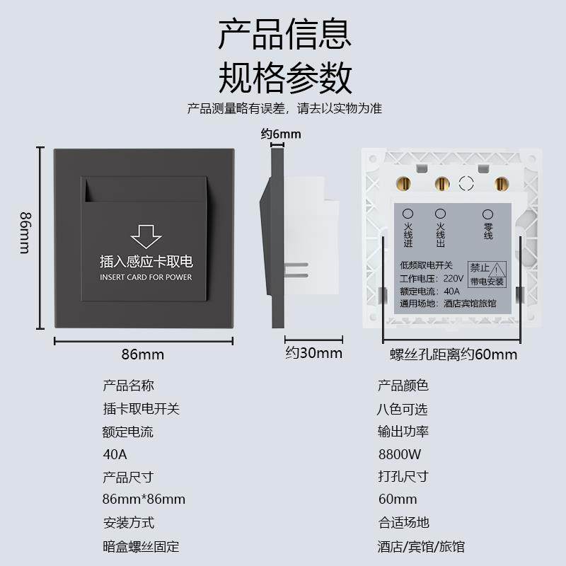 新款 酒店宾馆插卡取电开关40A低频感应卡专用带延时民宿86型三线
