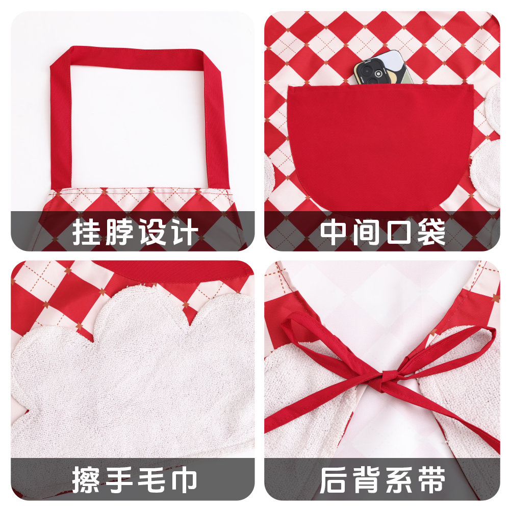 围裙厨房家用2025新款 可拆卸擦手巾加厚防污工作服免绑带做饭围腰