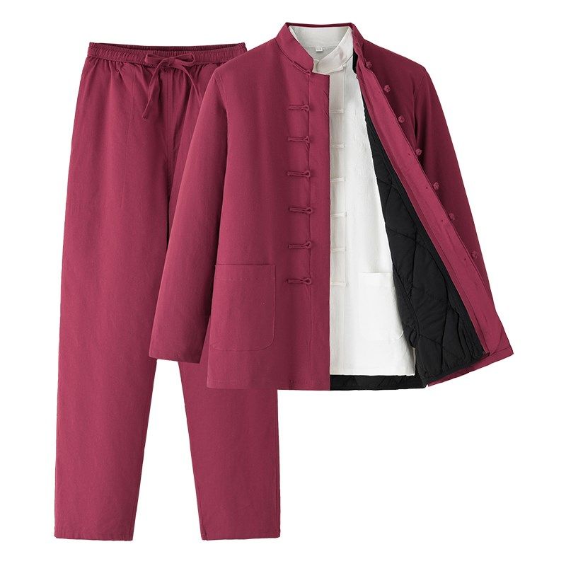 秋冬唐装 男加绒保暖三件套复古汉服中国风加厚棉袄盘口棉衣居士服