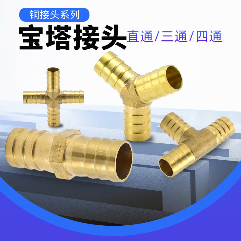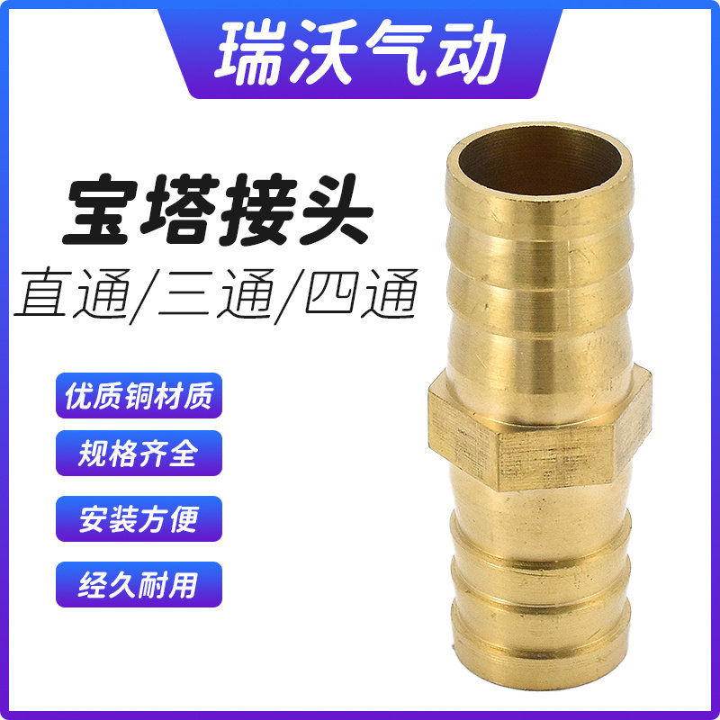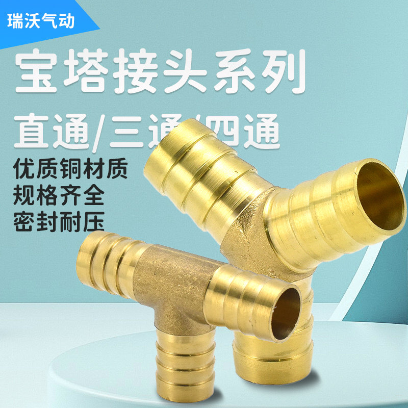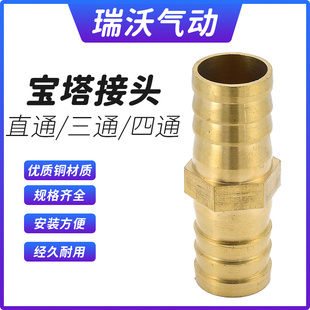 16mm 1个铜宝塔快插直通T型三通四通瓦斯软管气动接H头6