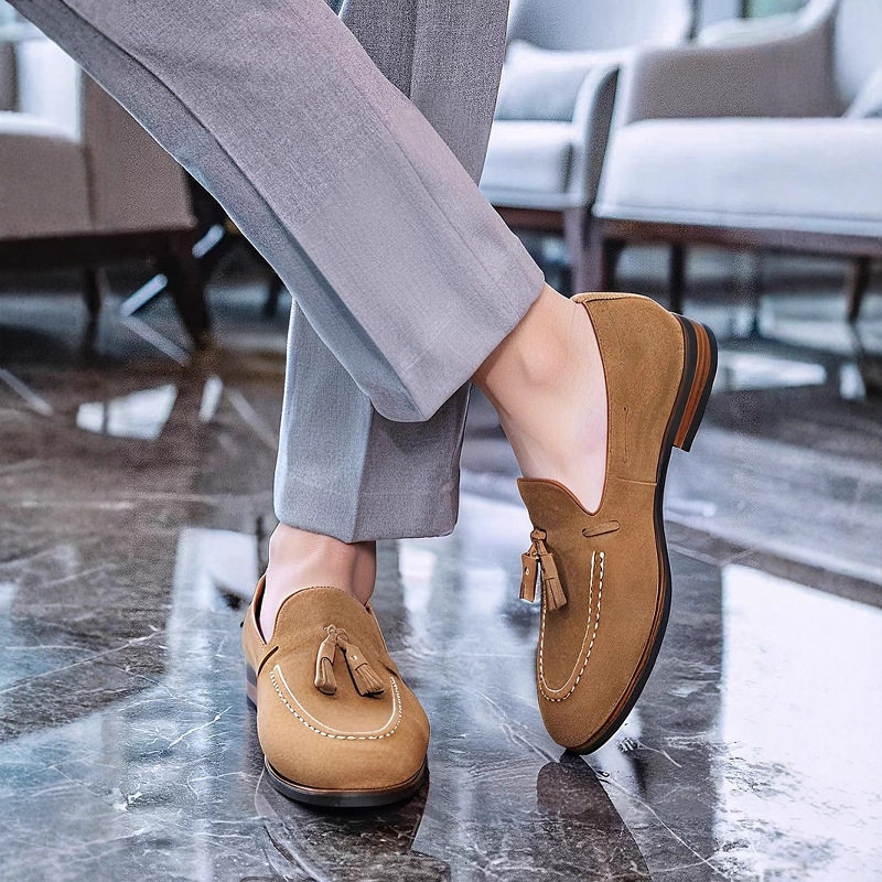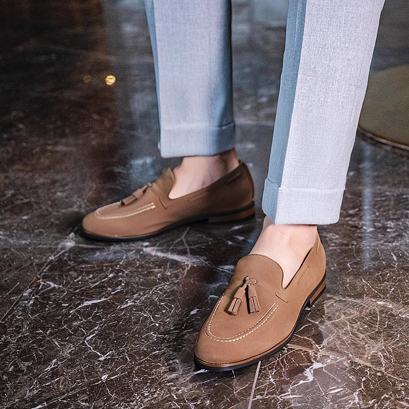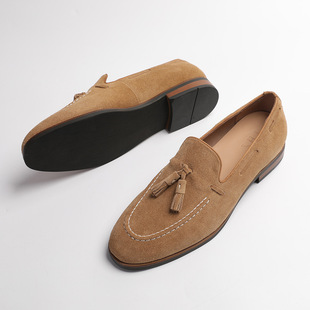 实木跟英伦休闲鞋 2026春新潮款 翻毛牛皮时尚 男式 商务风流苏乐福鞋