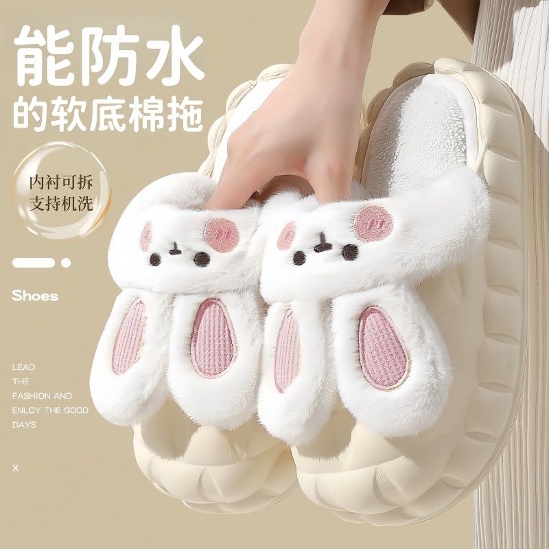 厚底防滑可拆卸保暖棉鞋 棉拖鞋 可外穿女士款 冬男式 防水 女2025新款