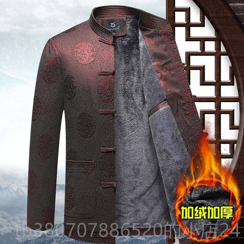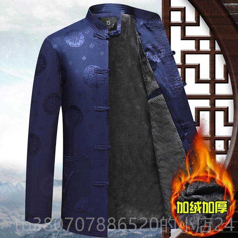 中国风父亲棉袄老人爷爷生日外套 加绒加厚爸爸棉衣套装 唐装 男冬季
