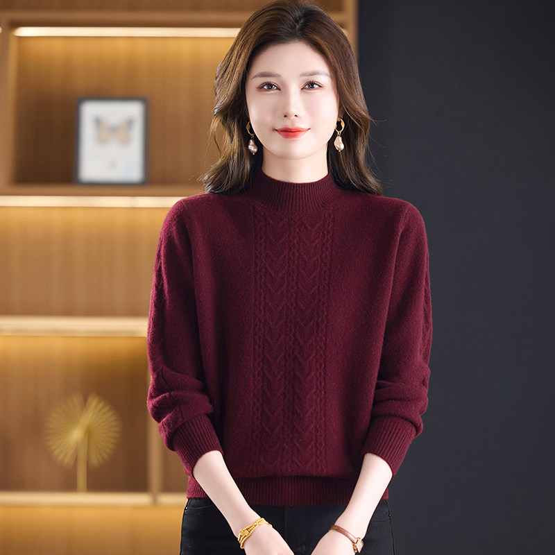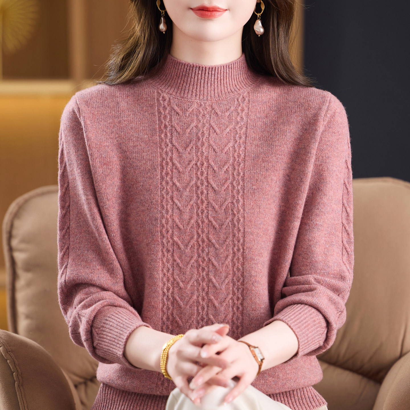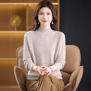 针织打底衫 品牌高级感羊毛衫 女半高领宽松毛衣秋冬加厚羊绒长袖