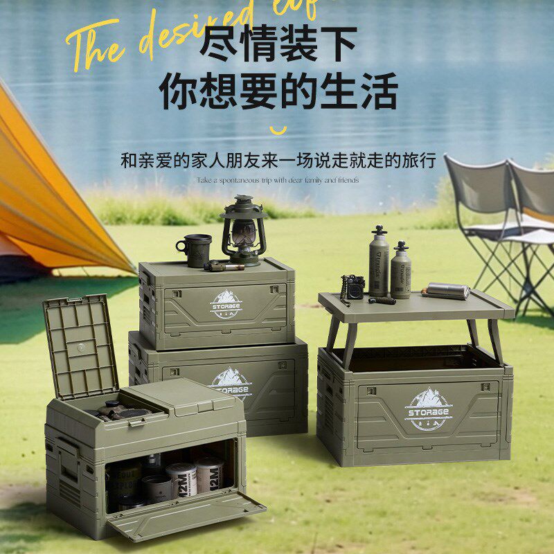户外露营便携野营收纳箱车载后备整理箱野餐储物箱三开门可折叠