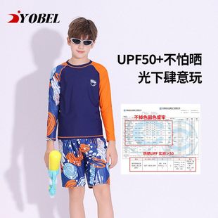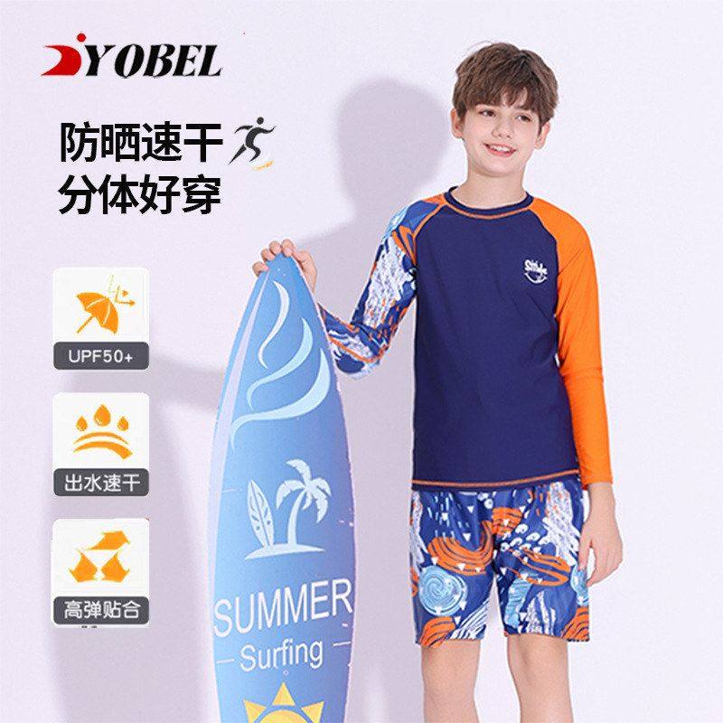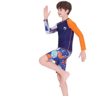 儿童泳衣男童分体长袖 批发 防晒游泳衣快干度假青少年温泉泳装