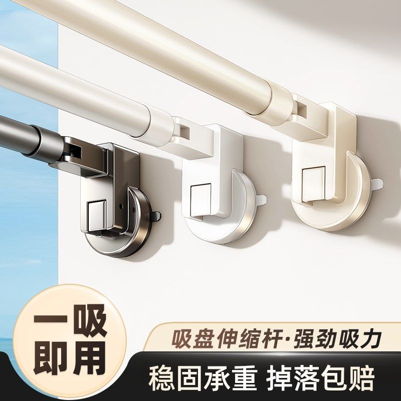 吸盘伸缩晾衣杆免打孔伸缩晒衣架杆窗帘挂杆浴帘杆子门帘衣柜撑杆