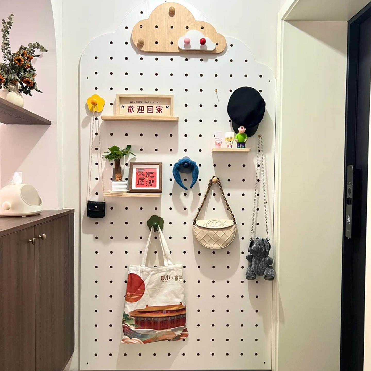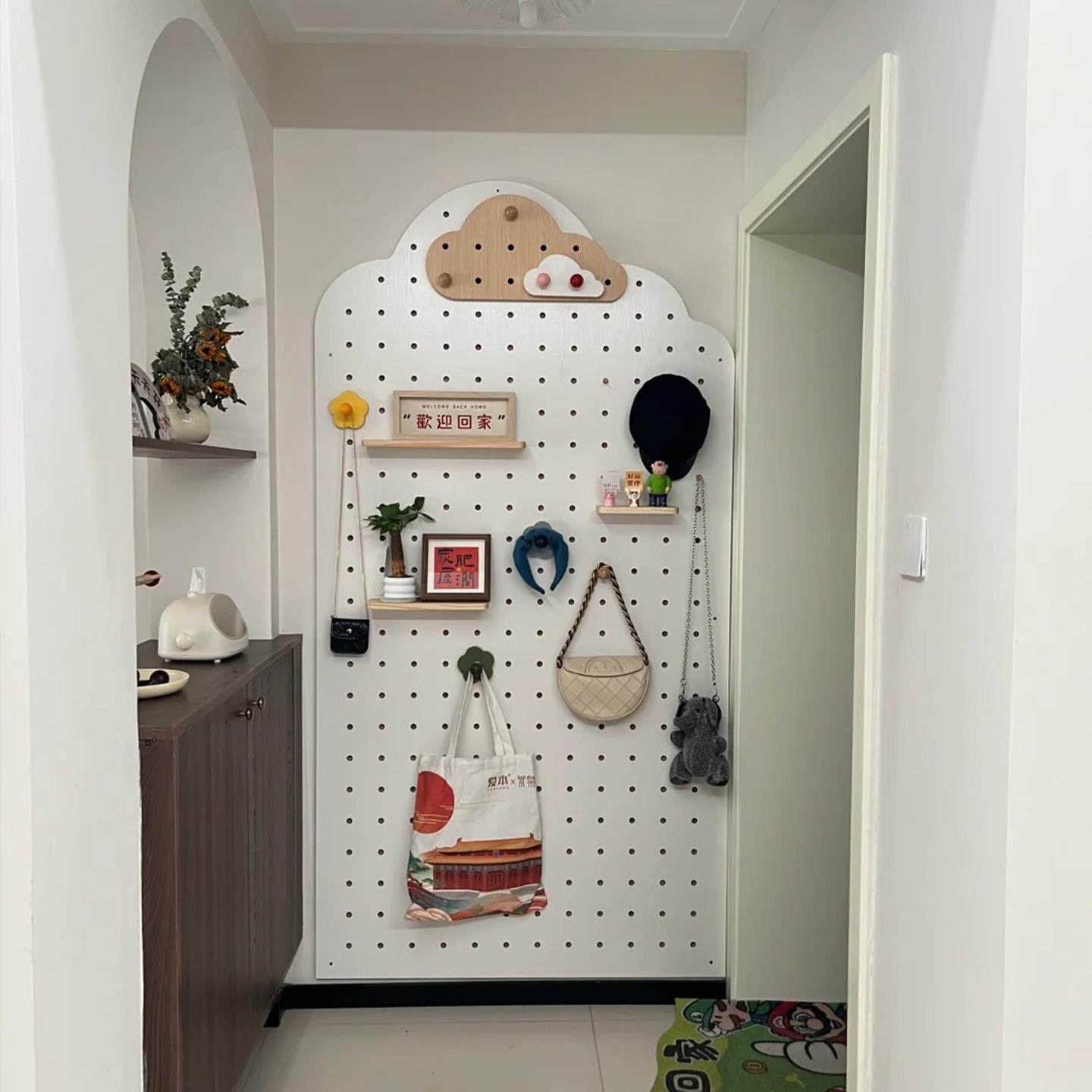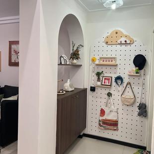实木定制入户玄关洞洞板装 造型墙收纳置物隔板衣帽架 饰架2025新款