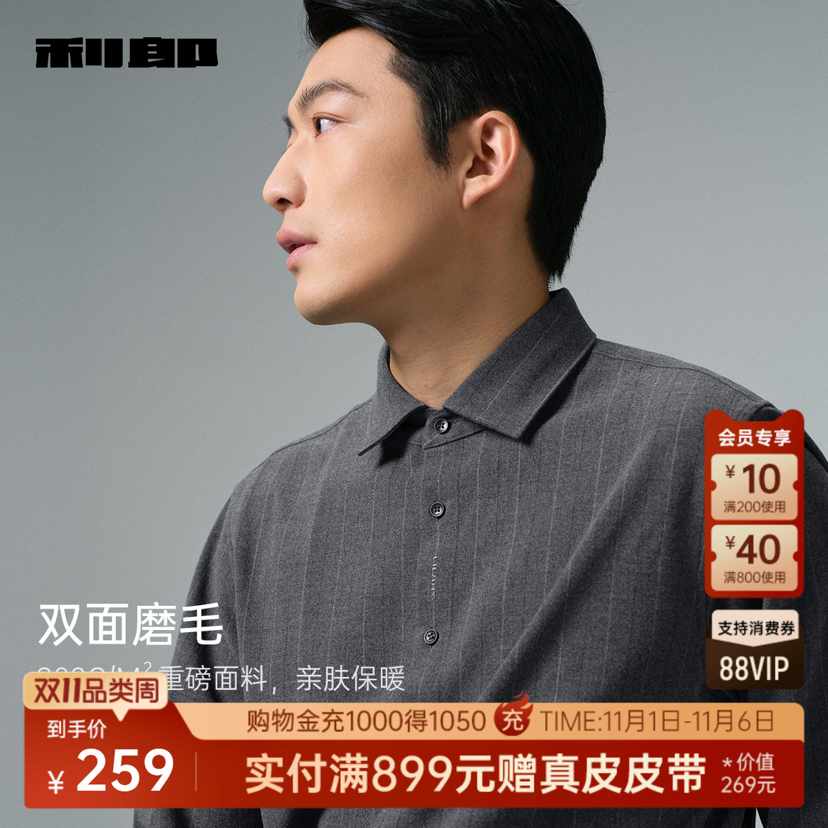 长袖 衬衫 男士 新款 利郎官方 商务休闲条纹2025冬季 衬衣男 磨毛
