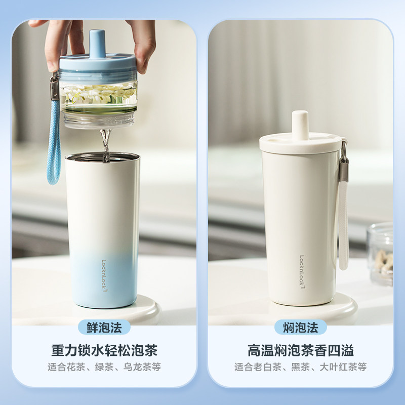 乐扣乐扣保温杯大容量女士高颜值车载新款 茶水分离水杯泡茶杯子男