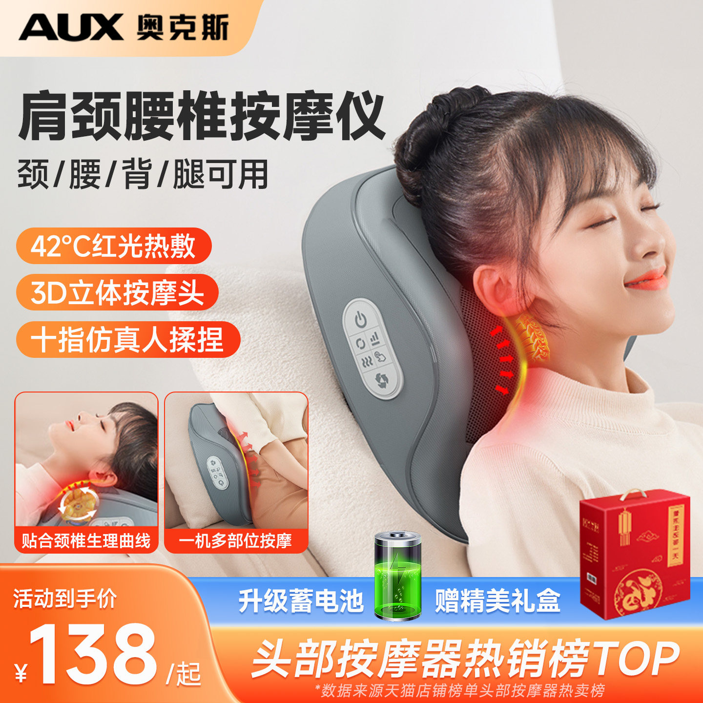 奥克斯按摩枕颈椎按摩器腰背全身多功能脖子电动肩颈按摩仪靠椅垫