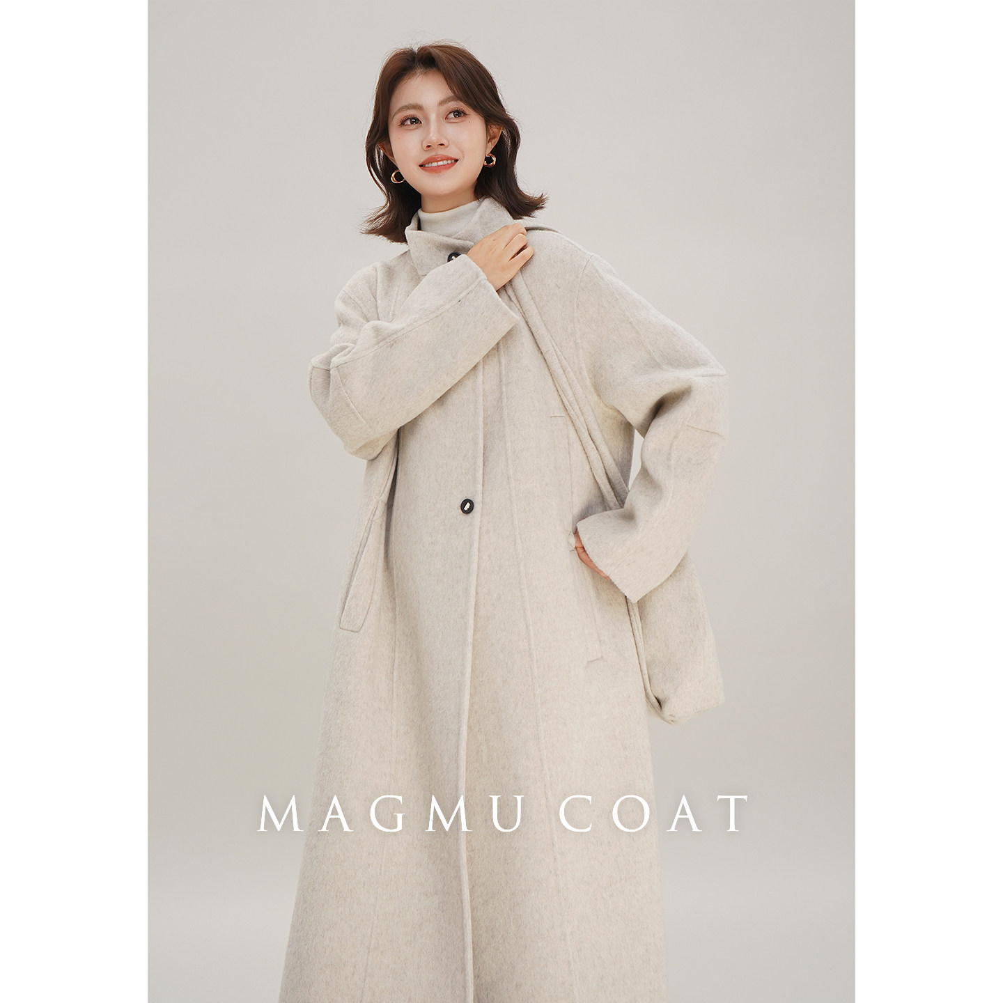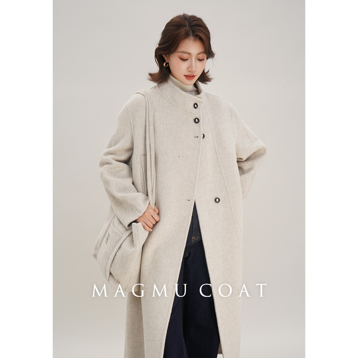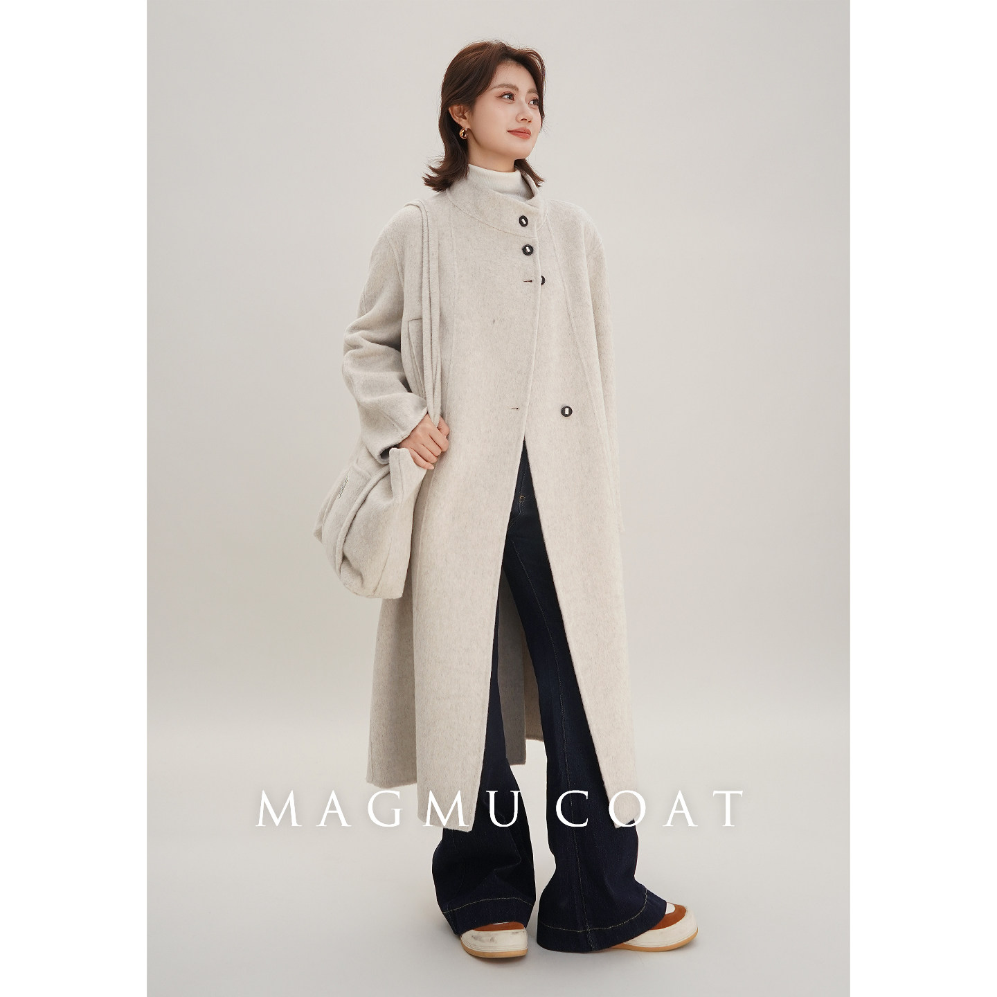 羊毛呢外套女 立领双面羊毛大衣系带假两件针织袖 2025冬季 斗篷新款