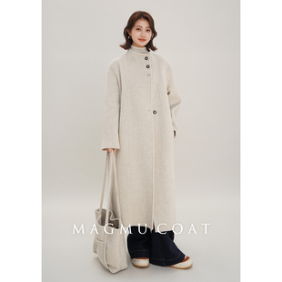 双排扣中长款 新款 秋水伊人毛呢外套女2025冬季 大衣 100%绵羊毛