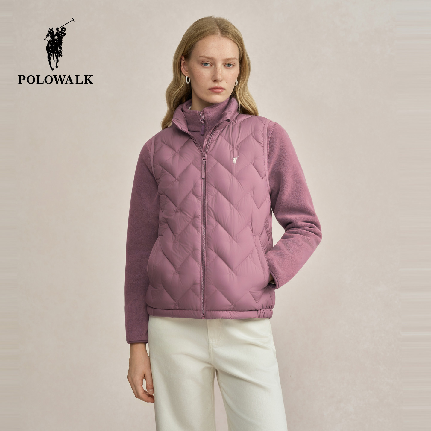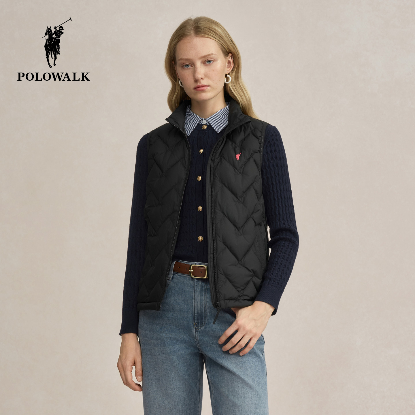 简约百搭90鸭绒立领背心外套女 新品 POLOWALK女式 羽绒马甲2025冬季