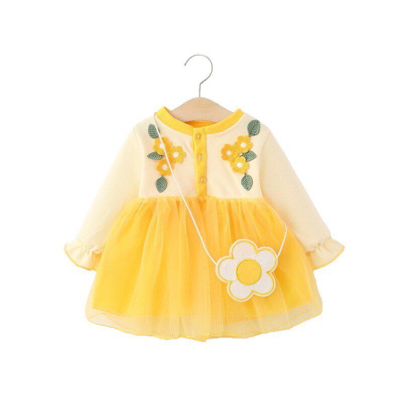 3岁婴儿宝宝秋装 儿童花朵网纱公主裙子0一1 连衣裙春秋季 女童长袖