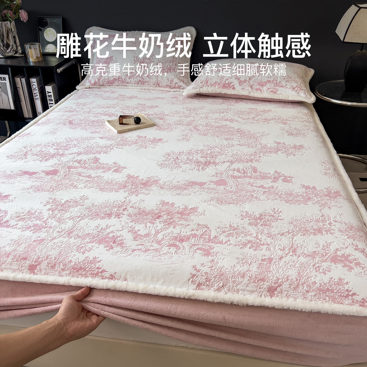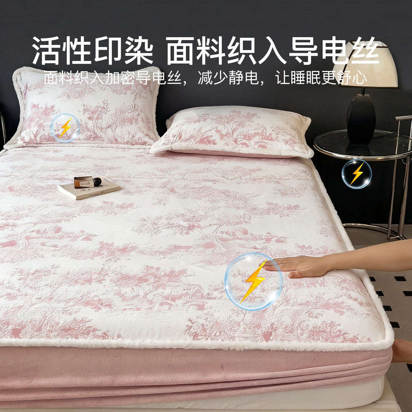 3秒速热牛奶绒床笠冬季 加绒床罩珊瑚绒加厚床垫保护罩防滑单品YB