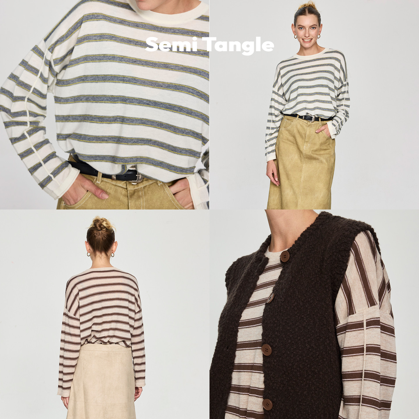 Semi 羊毛混纺彩条纹针织运动休闲上衣女 Tangle「Villa」春夏新品