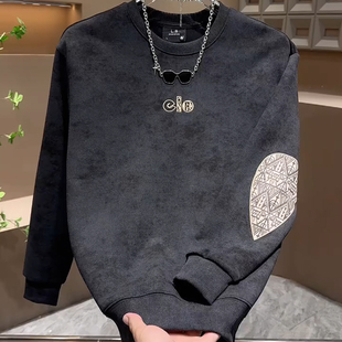 420g重磅黑色基础圆领卫衣男生2025春秋季 内搭宽松 男套头外套长袖