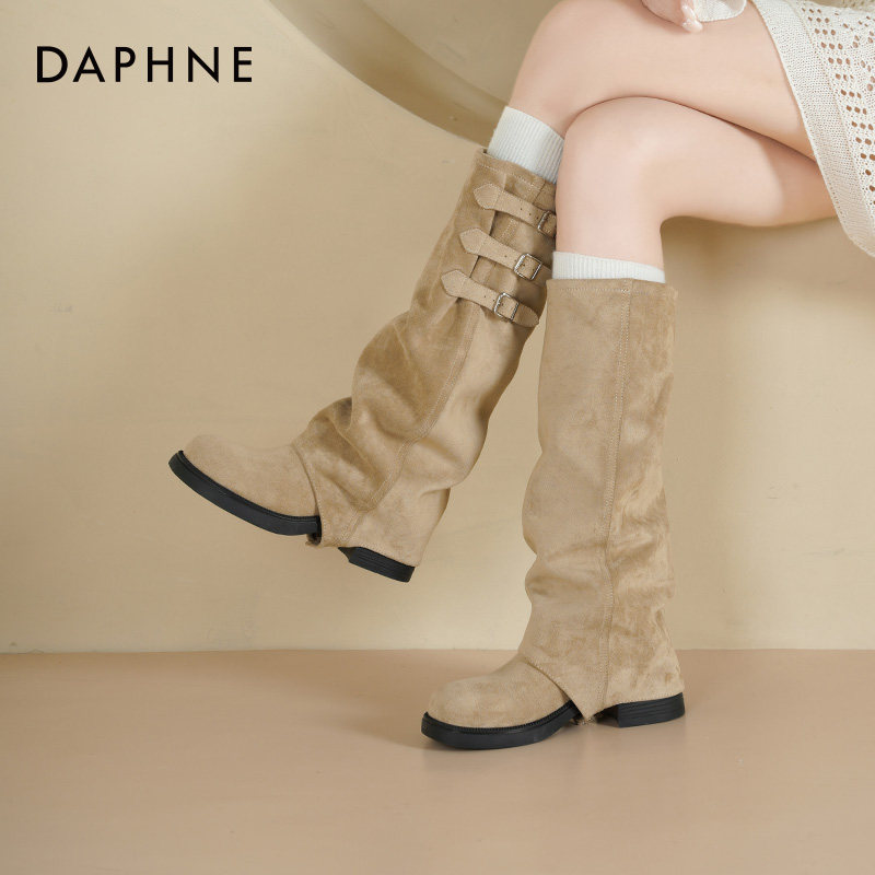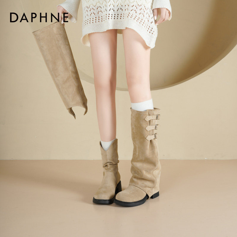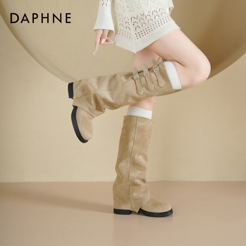 靴皮靴 时装 吴宣仪天美意千金靴复古厚底骑士靴加绒长靴女鞋 子新款
