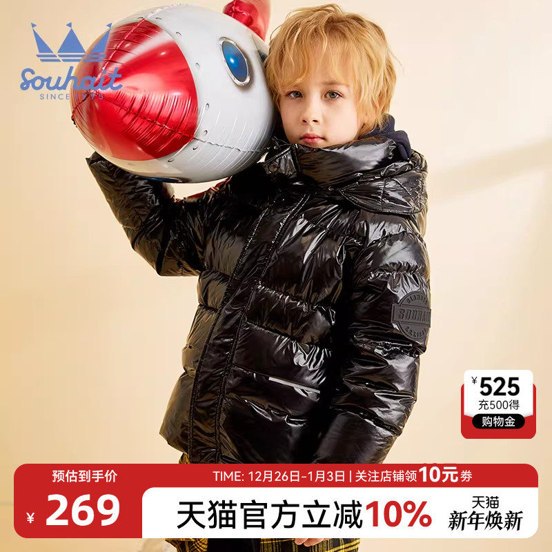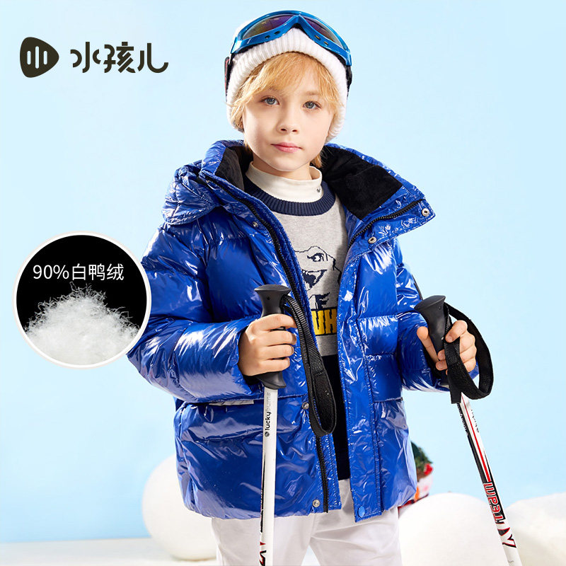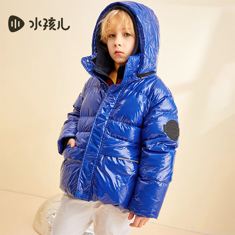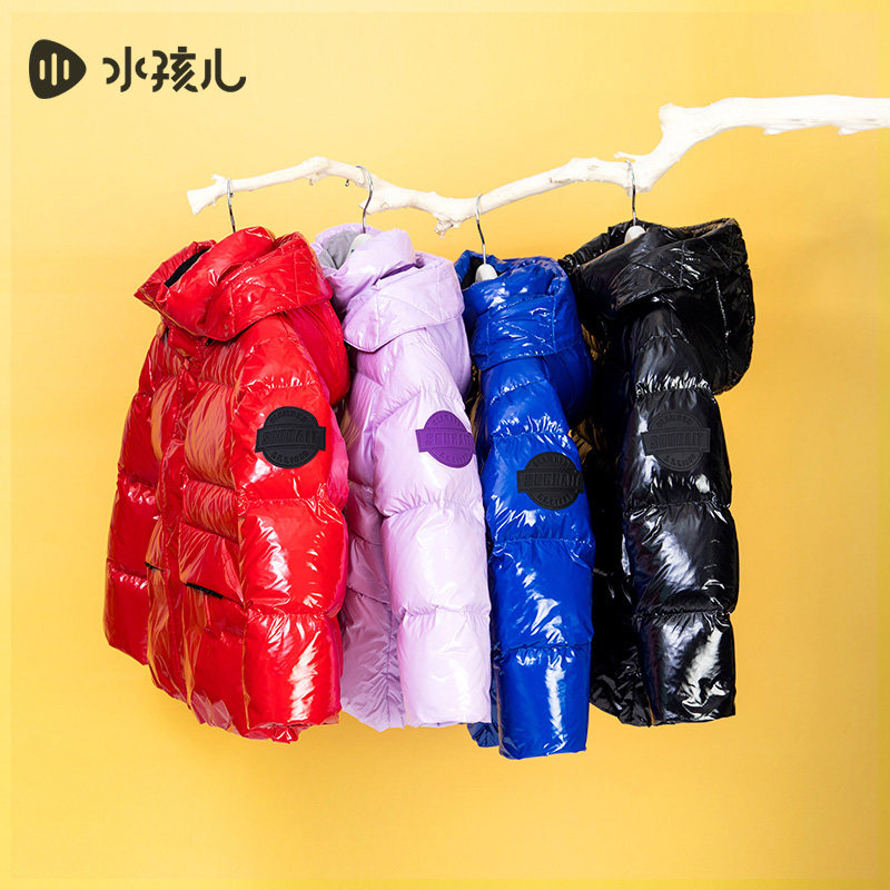 水孩儿儿童女童羽绒服秋冬亮面外套中大童男童连帽外套两面简洁款