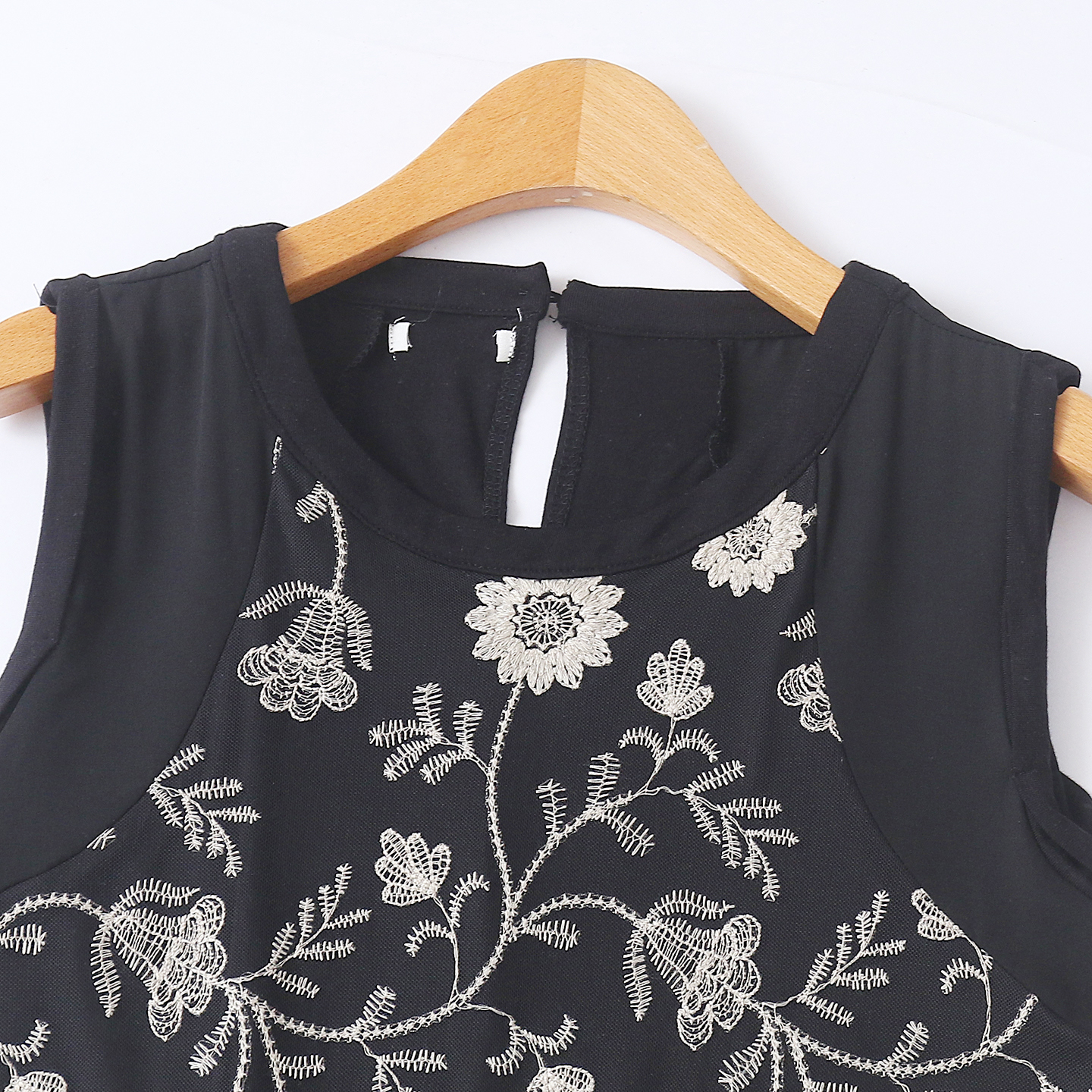 小衫 圆领一粒扣套头大码 夏季 外贸女装 32486 新款 网纱刺绣拼接无袖