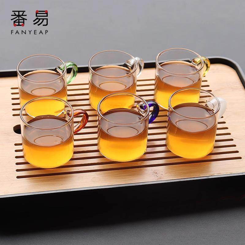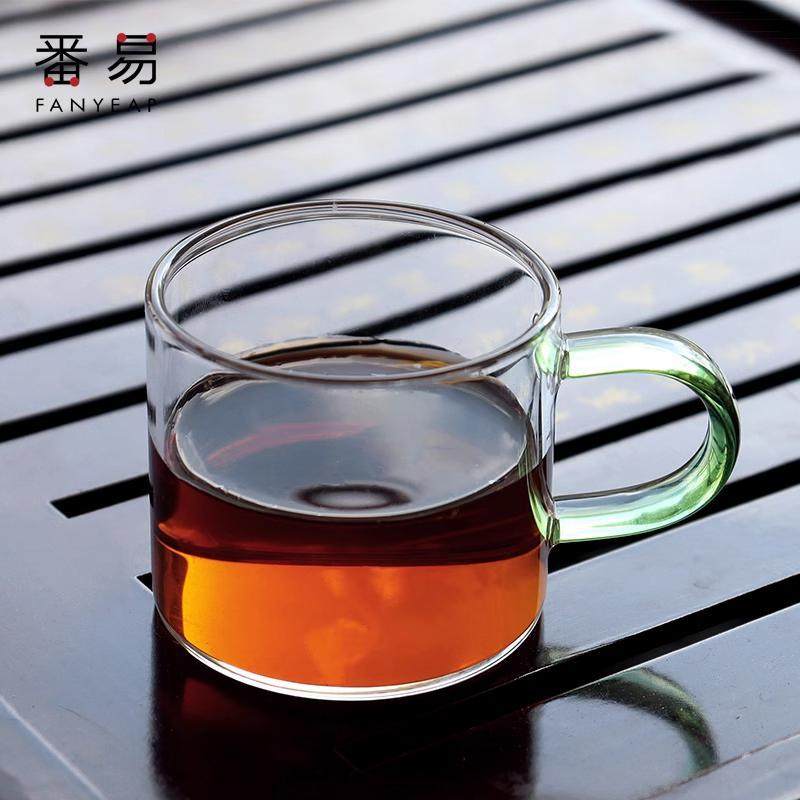 家用喝水杯子 木柄玻璃杯套装 青苹果中式 水杯待客泡茶杯耐高温男士