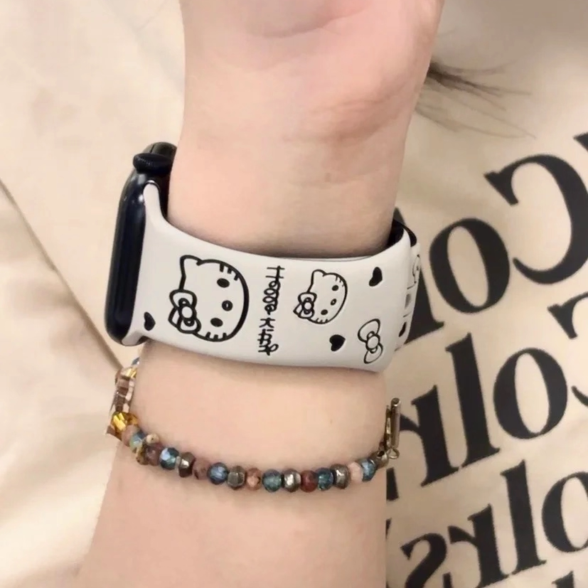 10表带迷藏KT双色applewatch 适用苹果S11 kitty硅胶浮雕爱心