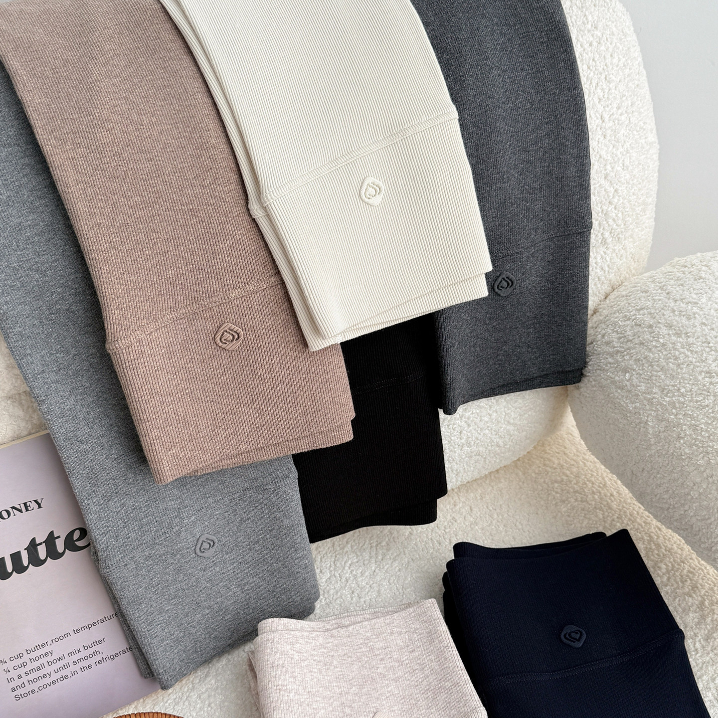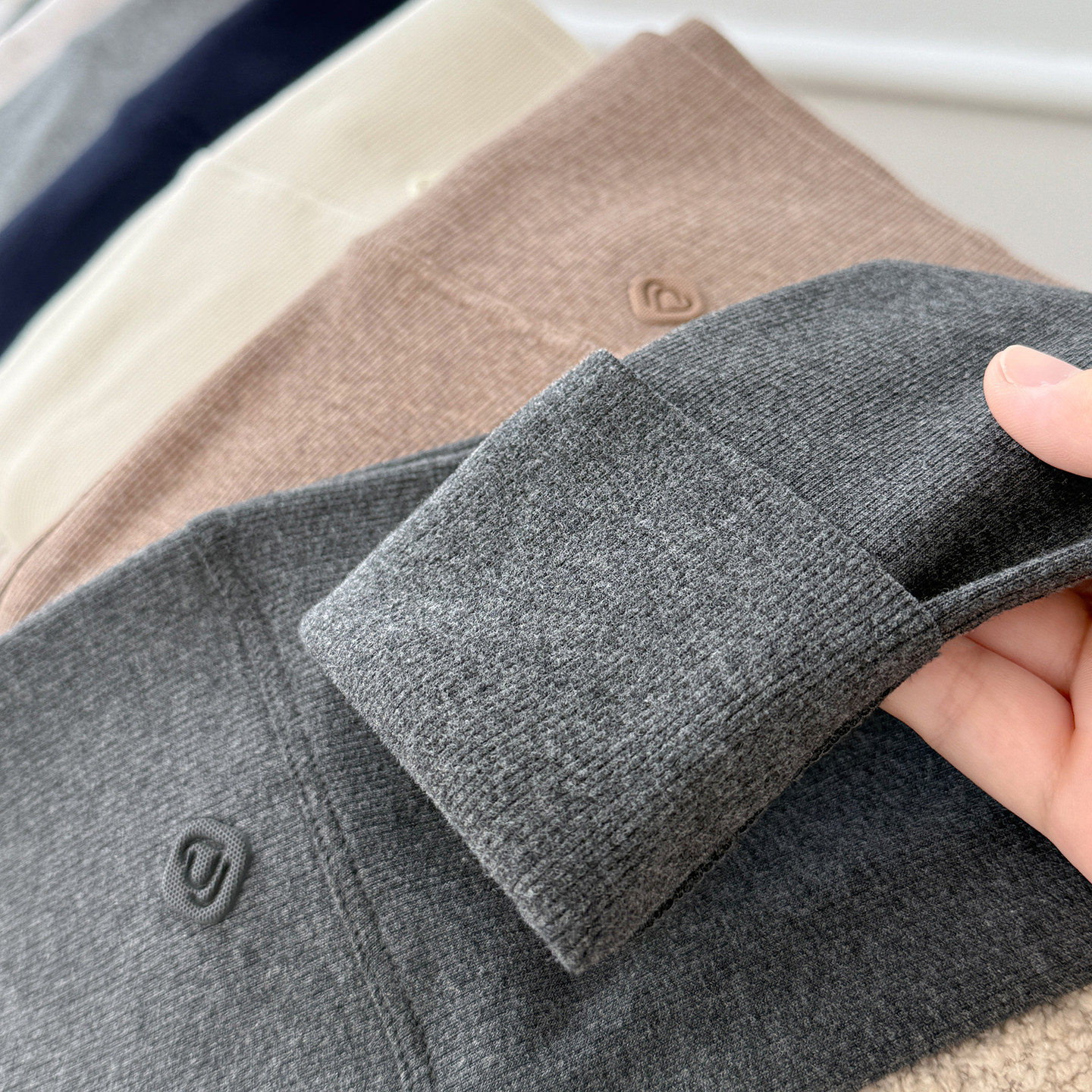 秋裤 打底裤 白色螺纹高个子加长版 女外穿高腰紧身加绒保暖裤 秋冬季