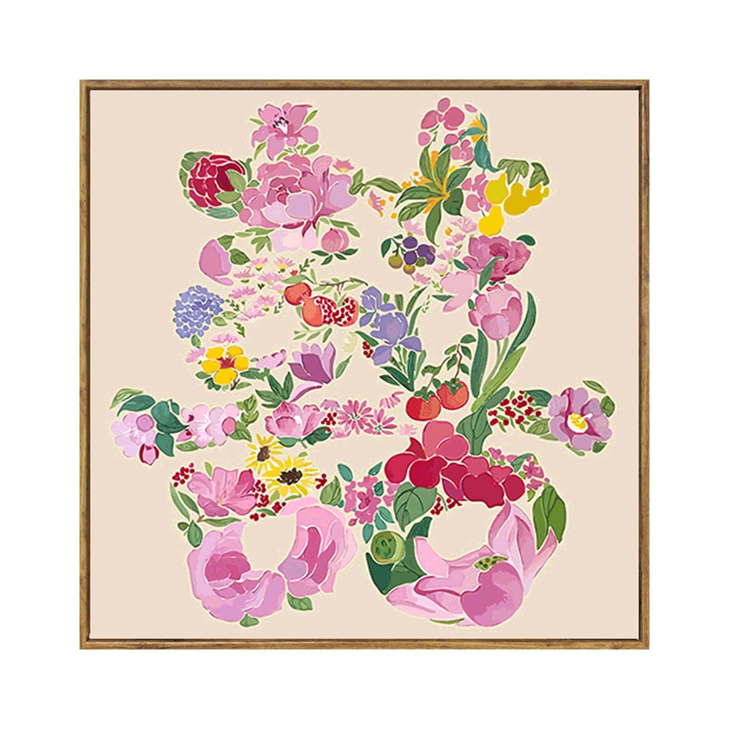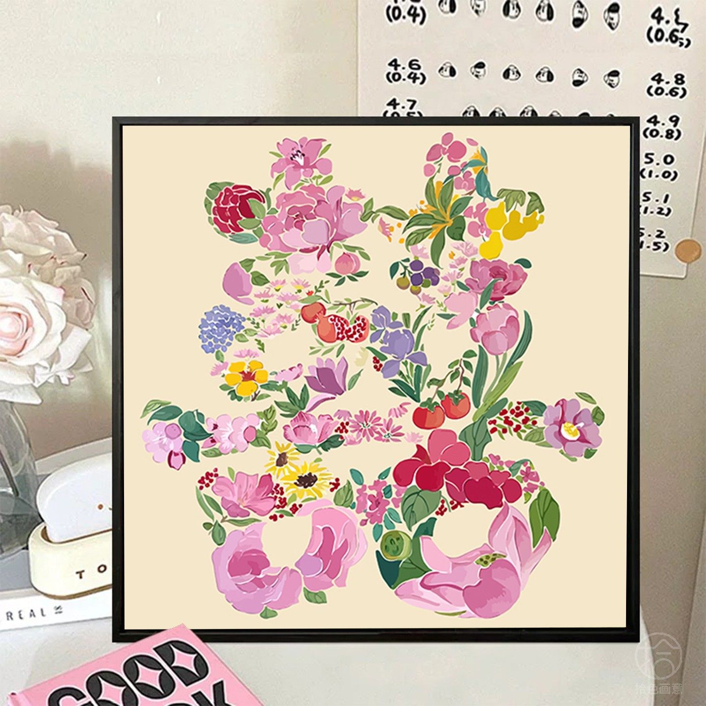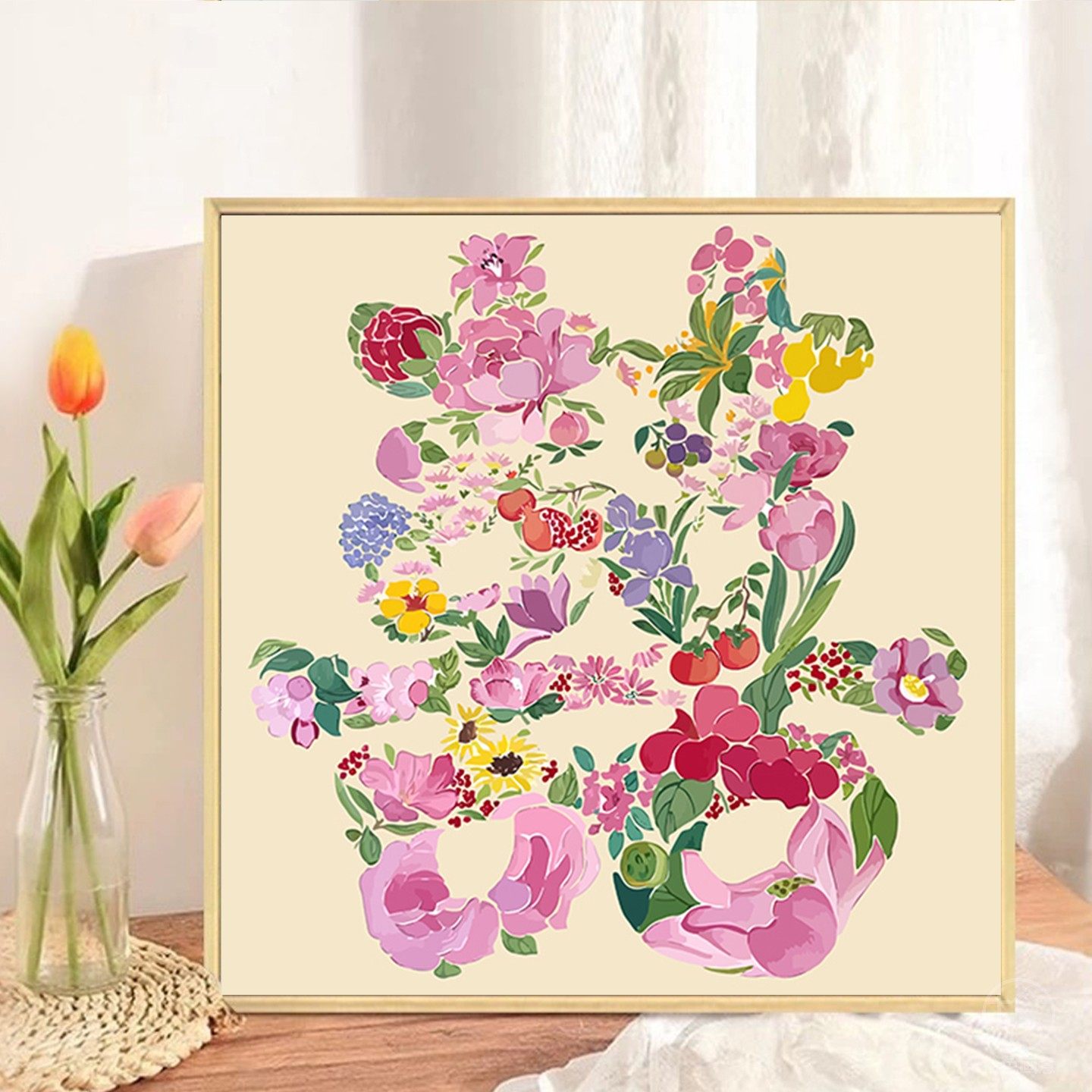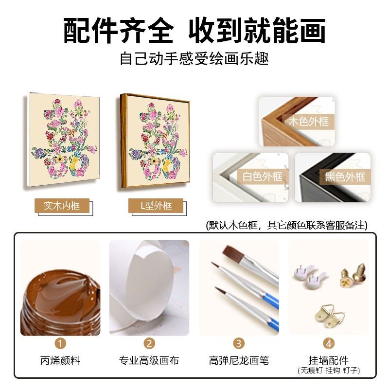 喜鹊繁花数字油画diy填充涂色手工绘龙凤双喜字订新婚礼物装 饰画