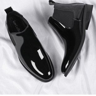 切尔西瘦瘦靴女 弹力小个子高跟鞋 牛皮法式 粗跟尖头短靴女秋冬新款