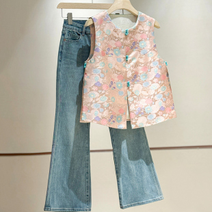 2026新中式 国风马夹中国风印花外穿马甲女网红设计感 减龄早秋款