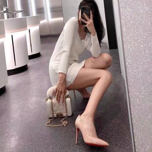 不累脚 尖头性感气质女御姐职业工作单鞋 红底黑色高跟鞋 女细跟新款