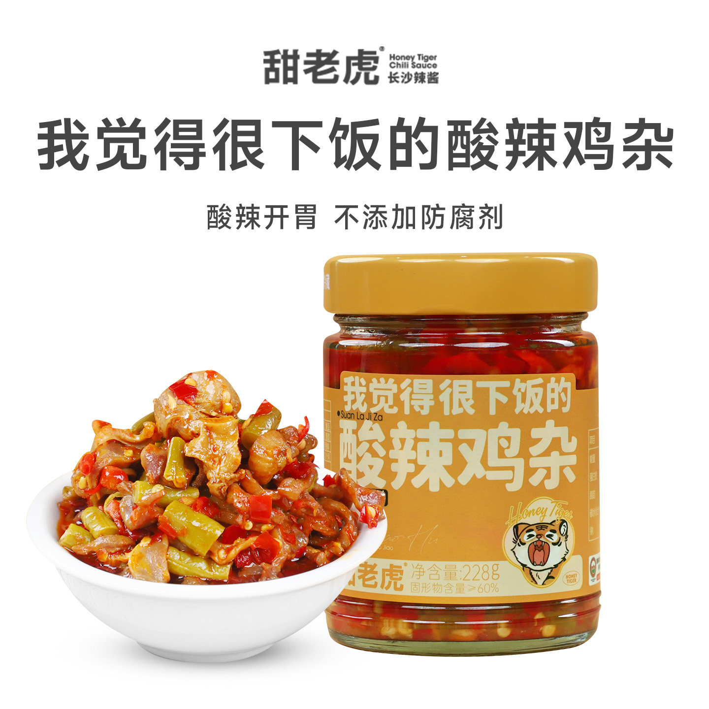甜老虎酸辣鸡杂下饭菜酸豆角鸡胗湖南特产拌饭拌面酱咸菜瓶装 即食