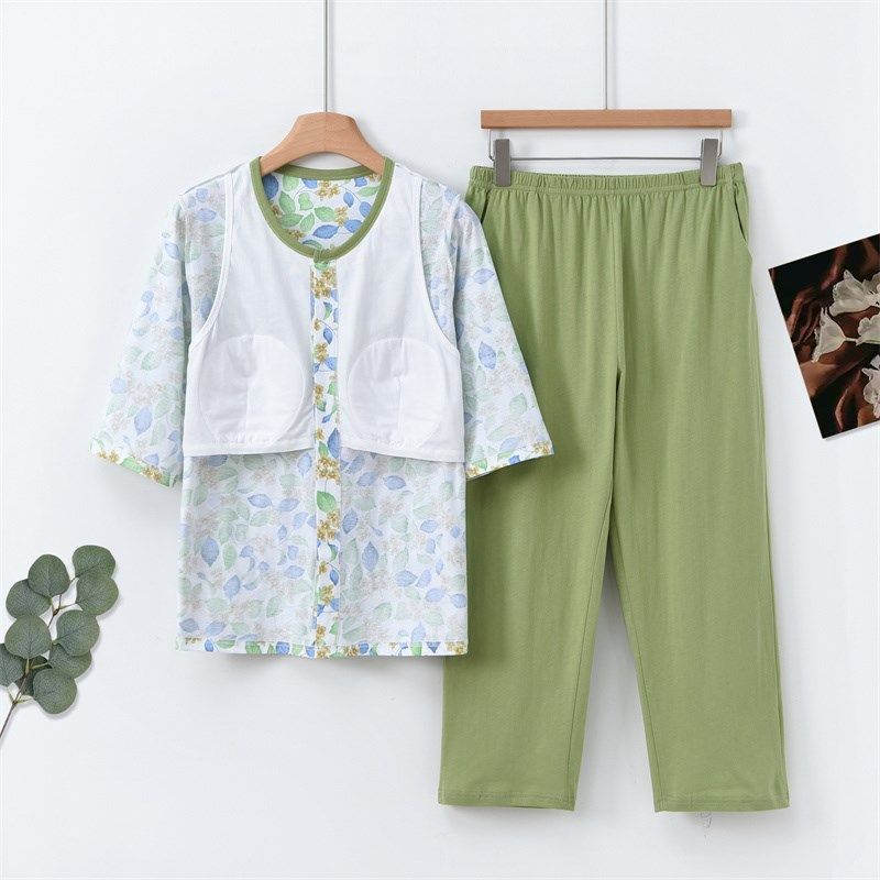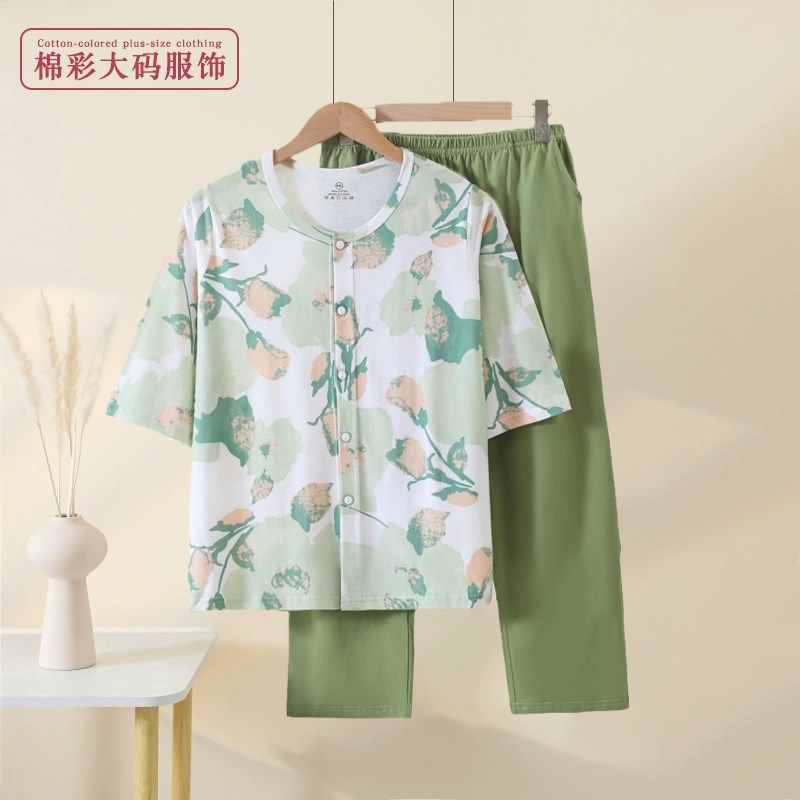 套装 女士七分袖 妈妈圆领休闲宽松透气 家居服睡衣睡裤 中老年薄c款