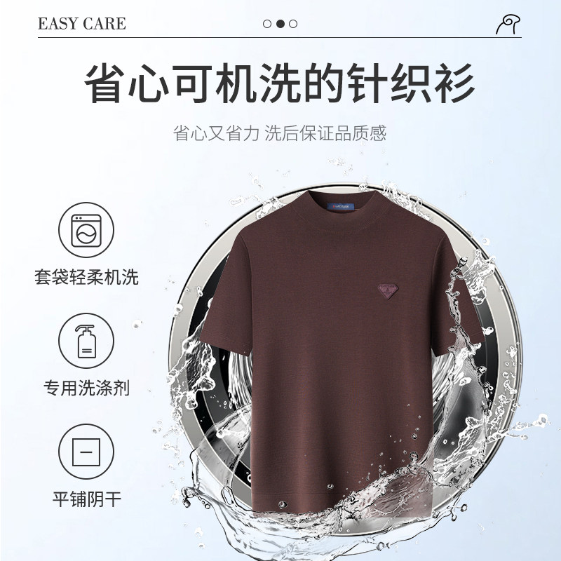 梦特娇冬季 可机洗 双面羊毛衫 男士 毛衣T恤保暖J 短袖 精纺绵羊毛