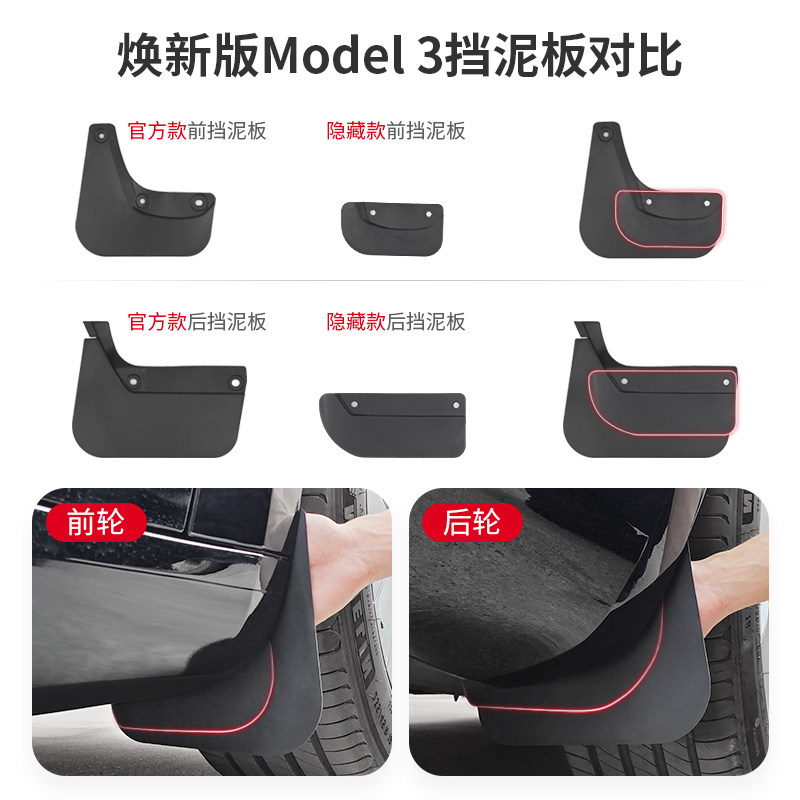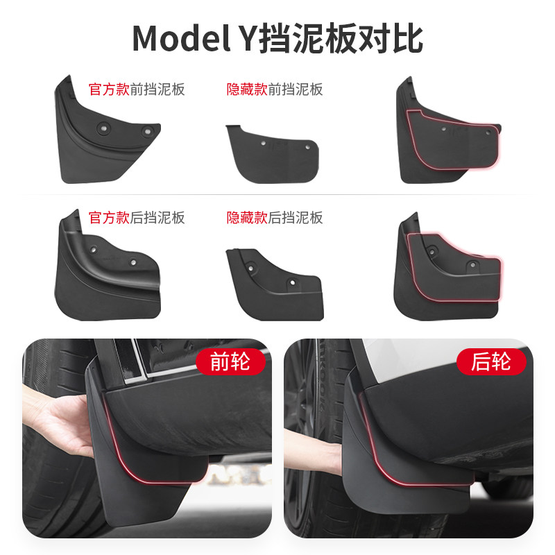 3隐藏式 挡泥板免打孔前后轮泥沙挡 ModelY 适用于特斯拉焕新版