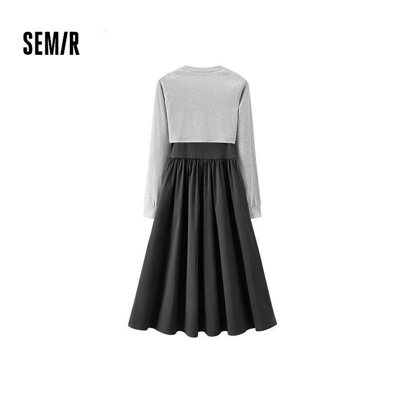 披肩撞色针梭拼假两件套裙百搭104525114010 女款 森马2025新款 秋季